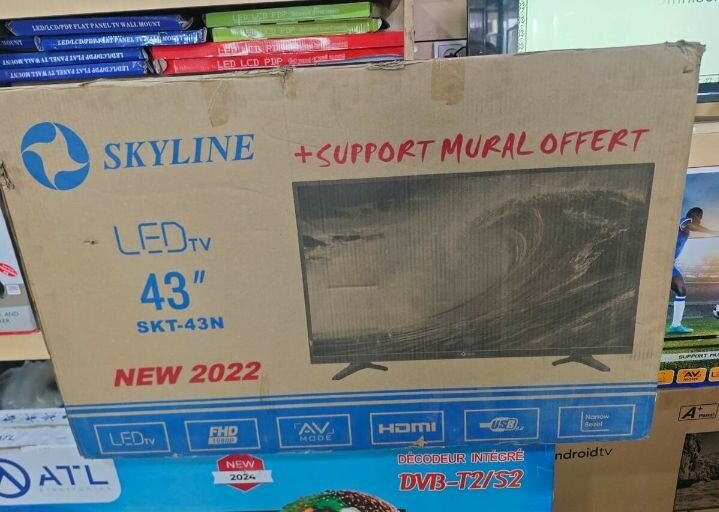Profitez d'une expérience visuelle immersive avec la TV LED Skyline de 43 pouces, dotée d'une résolution HD impressionnante. Idéale pour votre salon, elle est compatible HDMI et intégrée avec AV Mode pour des soirées cinéma parfaites. Inclut un support mural offert !
