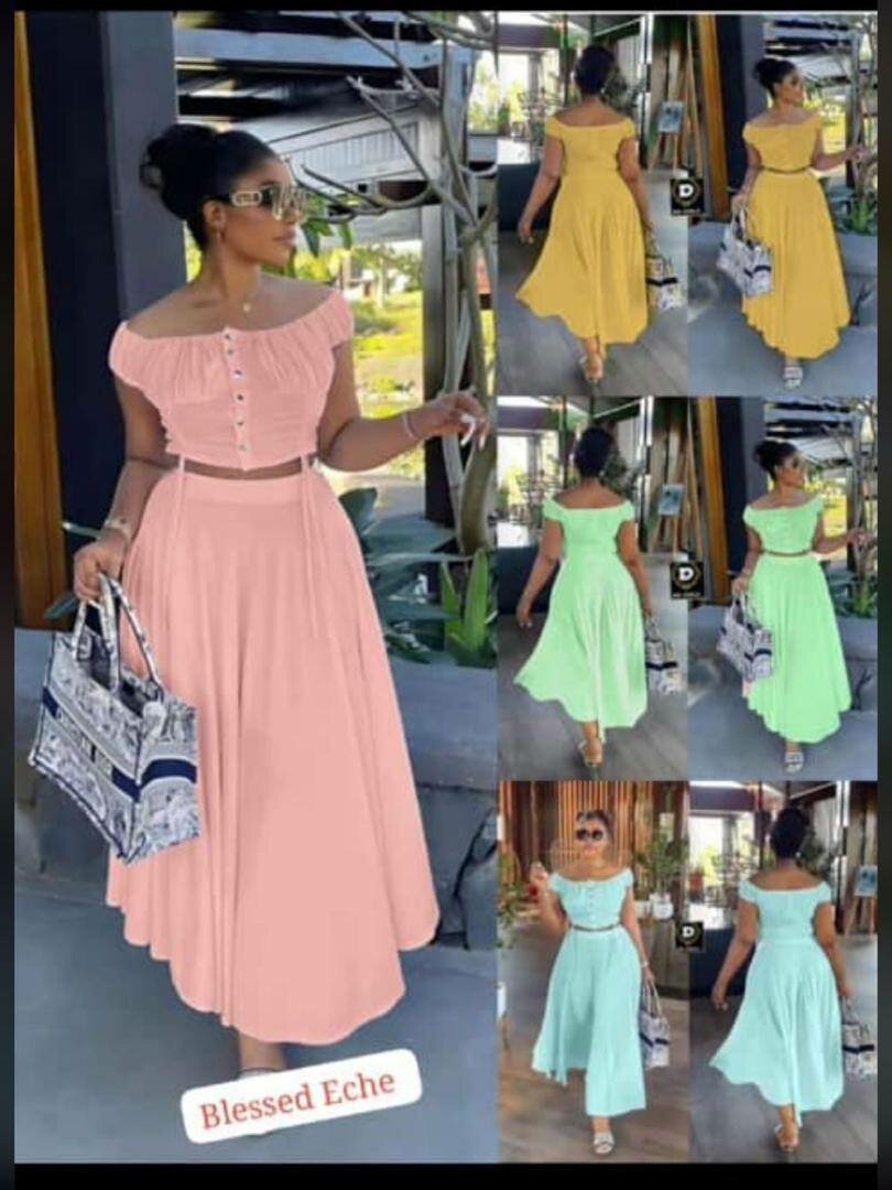 It's crop top with skirt. All sizes available Colours available are Orange Pink White Blue
