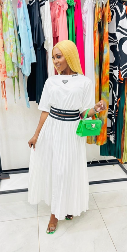 S TO XL costume deux pièces d'un haut court et d'une jupe plissée couleur blanc avec garniture contrastée