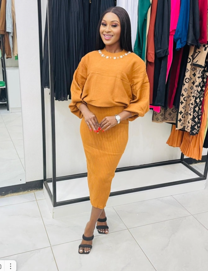 costume deux pièces d'une veste ample et d'une jupe midi moulante différents coloris