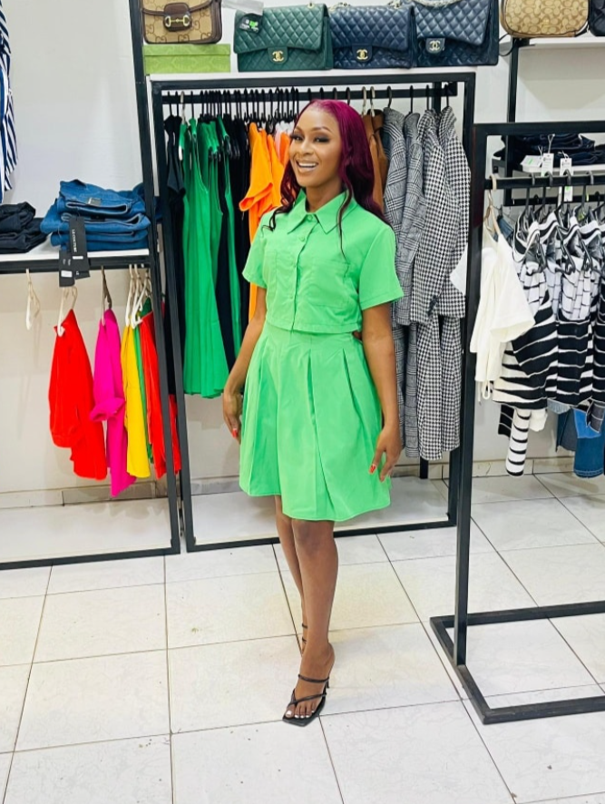 s to xxl costume deux pièces d'une chemise courte à manches courtes et d'une jupe au genou avec plis croisés différents coloris