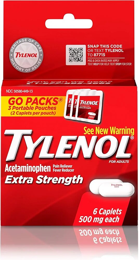 Tylenol Extra Strength caplets helps treat mild to moderate pain from ; Headaches, Menstrual Periods, Toothaches, Backaches, Osteoarthritis, Cold/Flu Aches and Pains and Reduces fever.