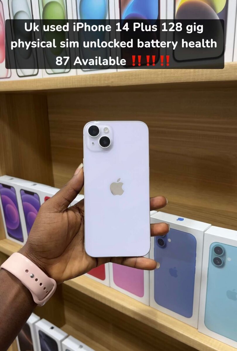 Uk used iPhone 14 Plus 128 gig physical sim unlocked battery health 87 Available