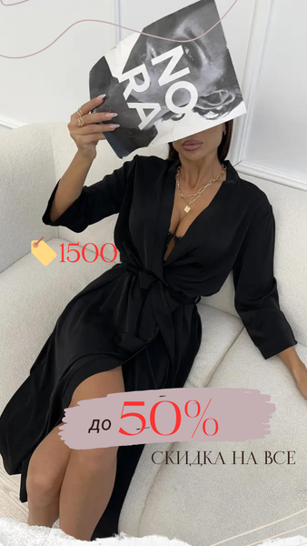 Черный длинный халат