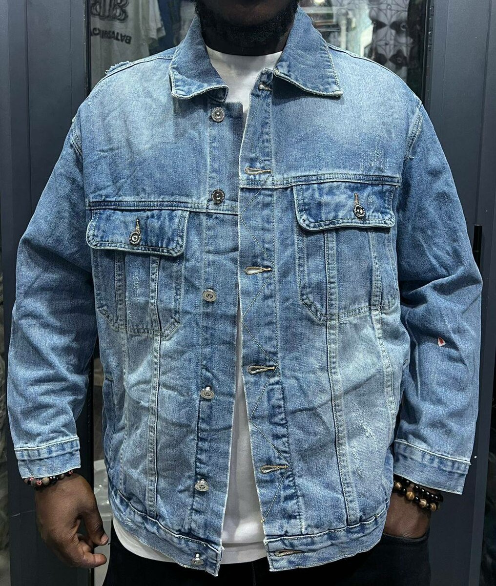UNE VESTE JACKET HOMME En jean avec une couture parfaite pour travail et sortie