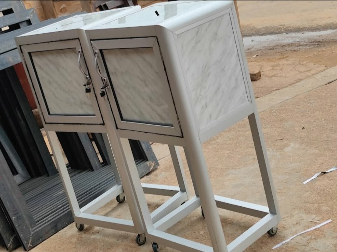 Urne de vote sécurisée en métal et marbre artificiel, idéale pour élections et sondages. Design moderne avec verrouillage sécurisé et roulettes pour une mobilité facile. Parfaite pour institutions, bureaux et événements.