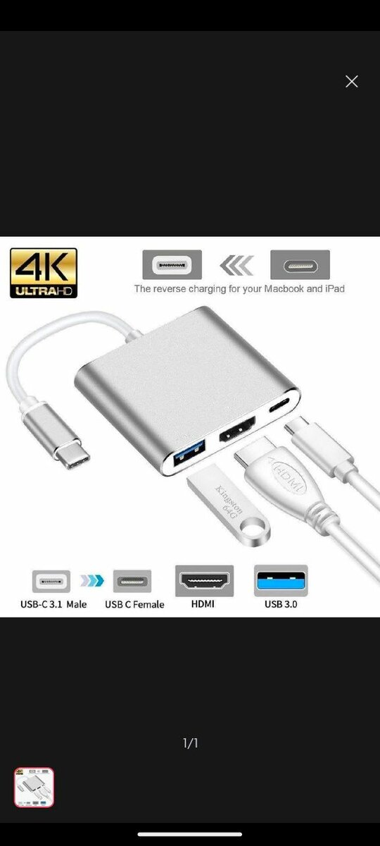 AD30 Adapter 3-in-1 Hub Multiport Type-C, HDMI Ports 4K, USB, PD 60W, USB C 3.0, Quick Charge Video Data Charger for Laptop Notebook Computer Smartphone
