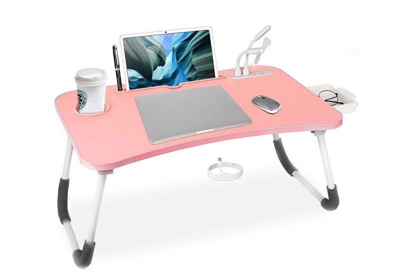 Foldable laptop table Cup holder Mini lamp Mini fan Usb cable and port Multifunctional