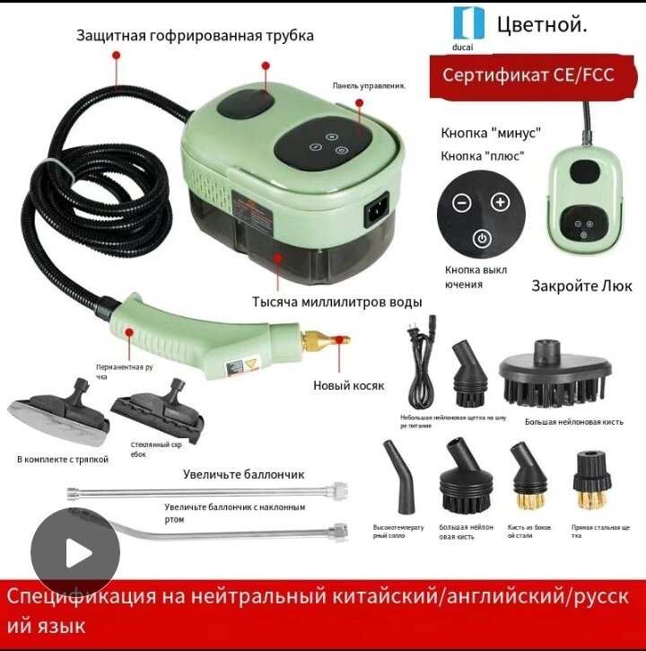 Паровой очиститель сенсорный оригинал 5 насадок работает 6режиме.Чистить все грязи.Кроме ковра.Обеъм 1.2литра.Доставка есть по всему Кыргызстане