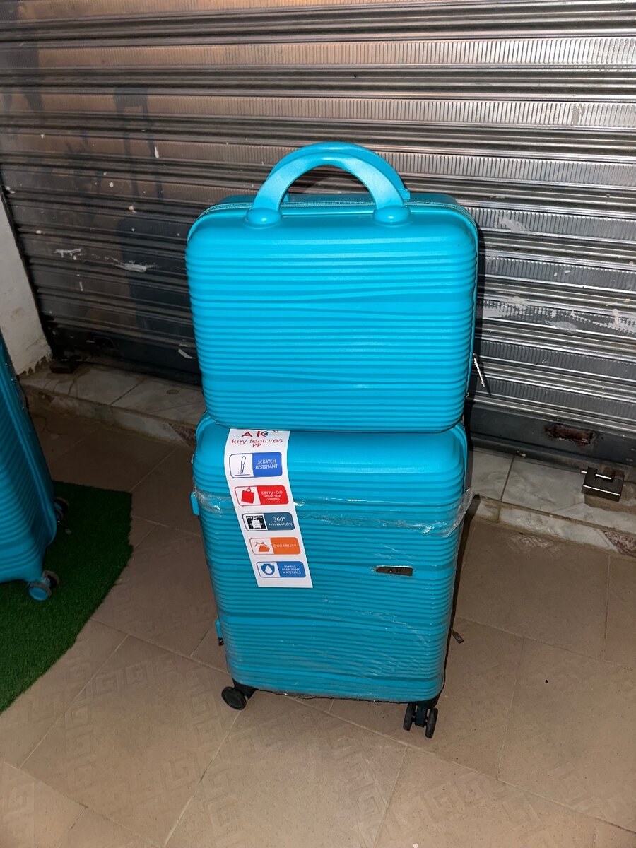 Durable and stylish bright blue luggage set, perfect for travel. Features a spacious suitcase and a matching carry-on with easy-rolling wheels and sturdy handles. Ideal for weekend getaways or long vacations, ensuring your belongings are secure and organized.
