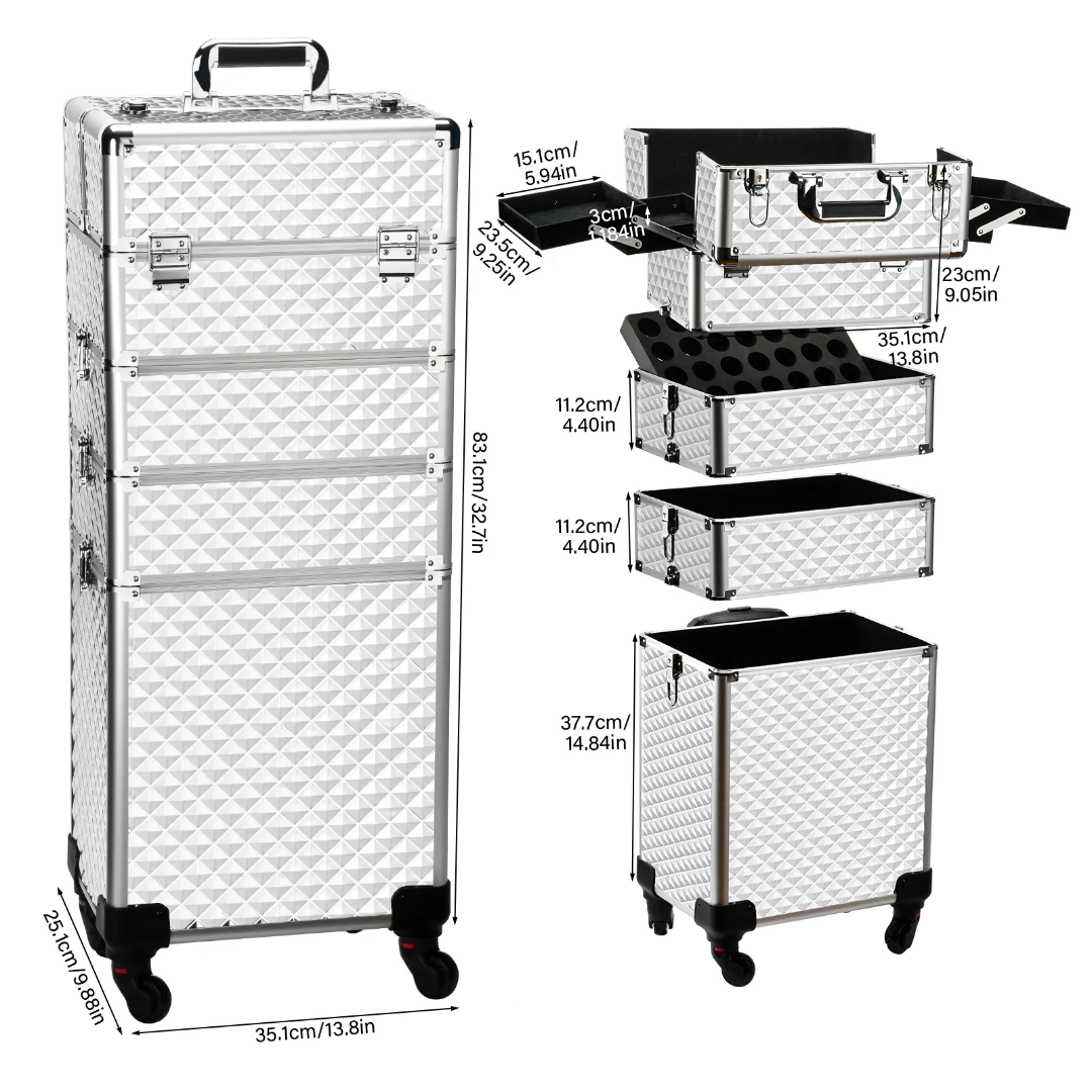 Une valise en Aluminium pour cosmétiques à roulettes de maquillage Pro 5en 1 à grande capacité