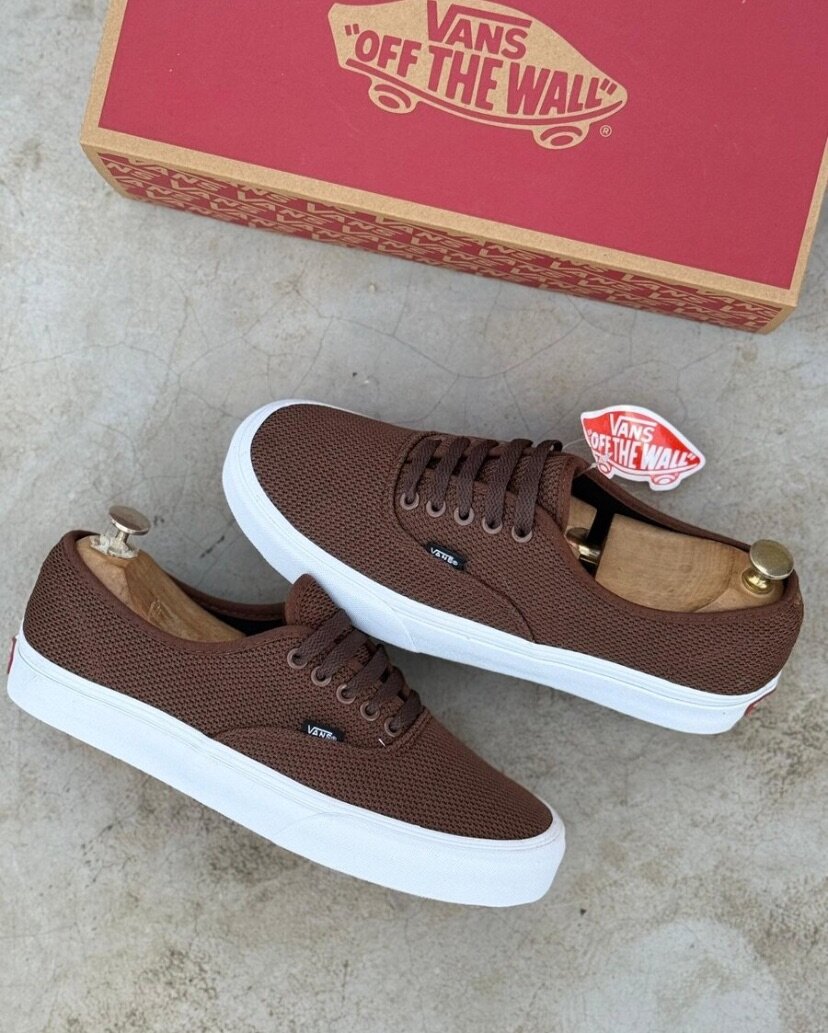 Baskets Vans en toile marron, parfaites pour un style décontracté. Confortables et durables, idéales pour un usage quotidien. Semelle en caoutchouc, s'accordent facilement avec toutes vos tenues.
