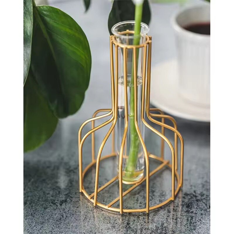 Ajoutez une touche moderne à votre intérieur avec ce vase en verre élégant avec support en métal doré. Idéal pour les fleurs et les plantes décoratives. Parfait pour la maison ou le bureau.
