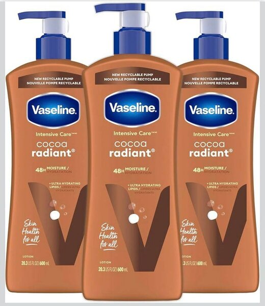 Une lotion corporelle Vaseline® testée par des dermatologues pour les peaux ternes et sèches, créée avec du beurre de cacao pur pour un éclat durable et radieux. Sa formule non grasse est cliniquement testée pour apporter 90 % d'hydratation en plus par rapport à une peau non traitée.