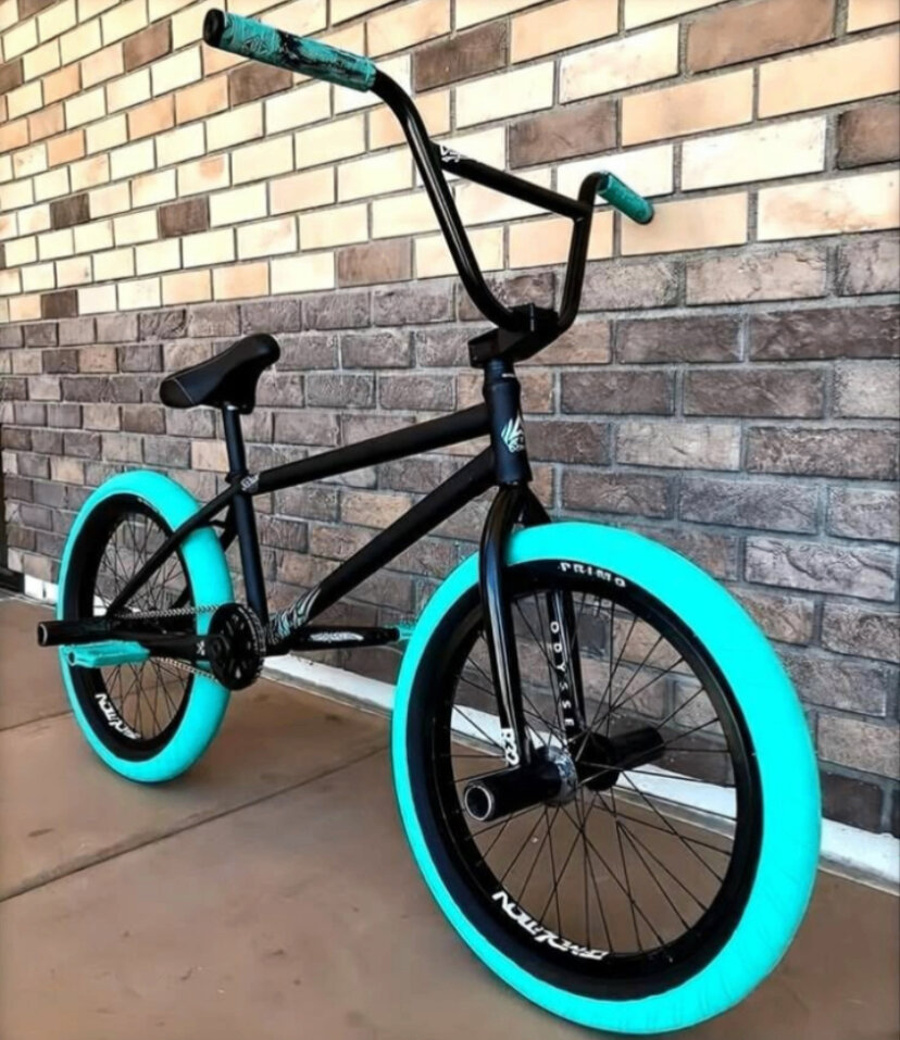 Idéal pour les amateurs de sport extrême, ce vélo BMX freestyle allie robustesse et style avec son cadre noir élégant et ses pneus turquoise éclatants. Parfait pour des figures audacieuses et des aventures urbaines.