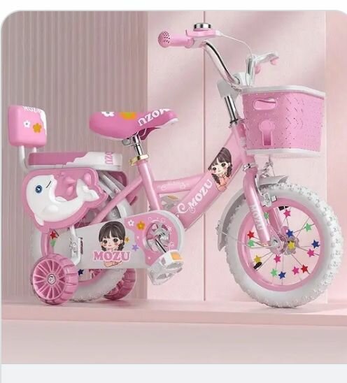 Adorable vélo fille Mozu, design rose avec motifs charmants. Idéal pour apprendre à faire du vélo avec stabilisateurs pour sécurité. Parfait pour les petites aventures et les promenades en famille.