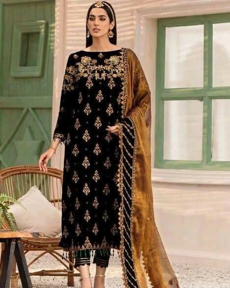 Velvet Embroidered Shirt, Velvet Embroidered Trouser, Nett Embroidered Duppata
