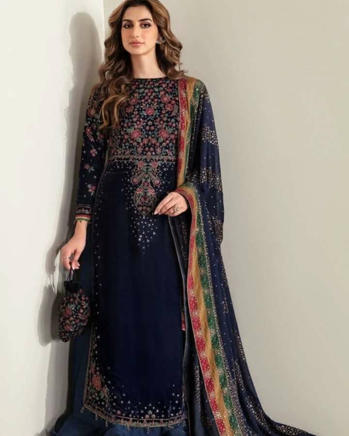 Embroidered velvet Shirt, Embroidered Velvet Trouser, Digital Printed Velvet Duppata...
