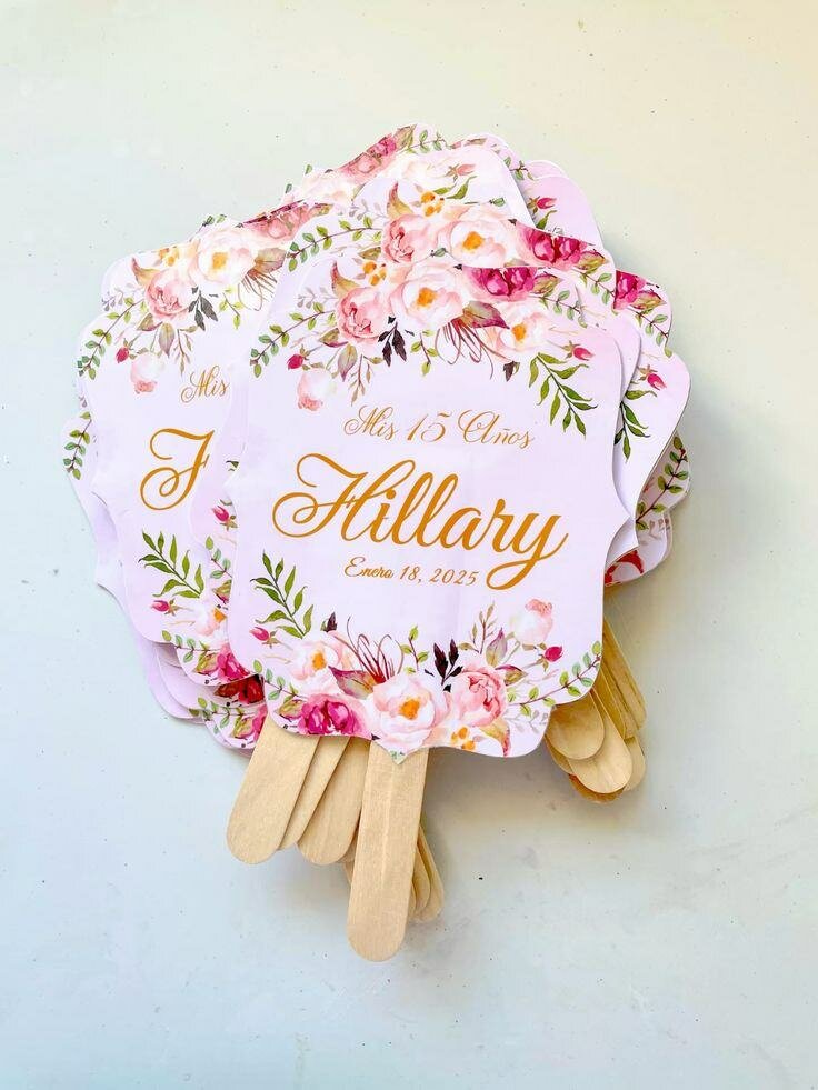 Ajoutez une touche d'élégance à votre grand jour avec ces éventails floraux personnalisés. Parfaits pour les mariages et les fêtes, ces éventails sont ornés de motifs floraux délicats et peuvent être personnalisés avec noms et dates. Offrez à vos invités un souvenir pratique et charmant qui les gardera au frais.