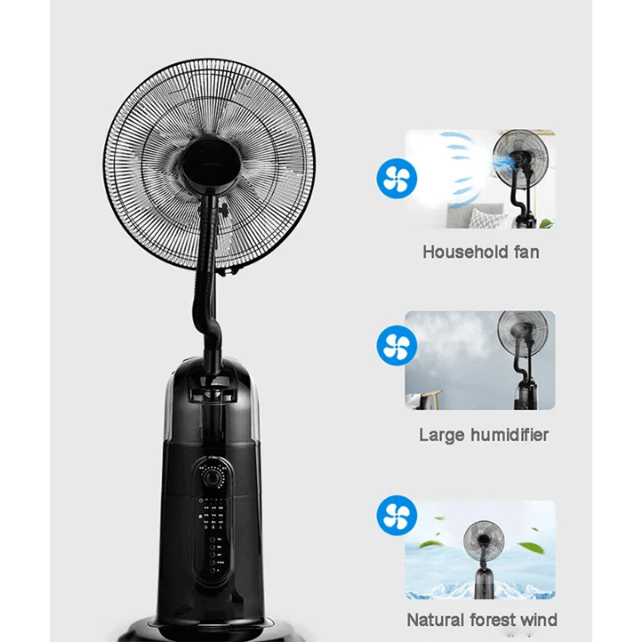 Apportez un souffle d'air frais dans votre maison avec ce ventilateur brumisateur. Idéal pour refroidir et humidifier les pièces, il recrée la brise forestière naturelle. Parfait pour les journées chaudes, il allie efficacité et confort.