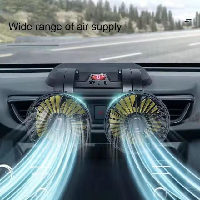Découvrez notre ventilateur de voiture double, idéal pour les longs trajets. Facile à brancher sur l'allume-cigare, il offre une large diffusion d'air pour un confort optimal. Parfait pour rafraîchir l'intérieur de votre véhicule pendant les journées chaudes.