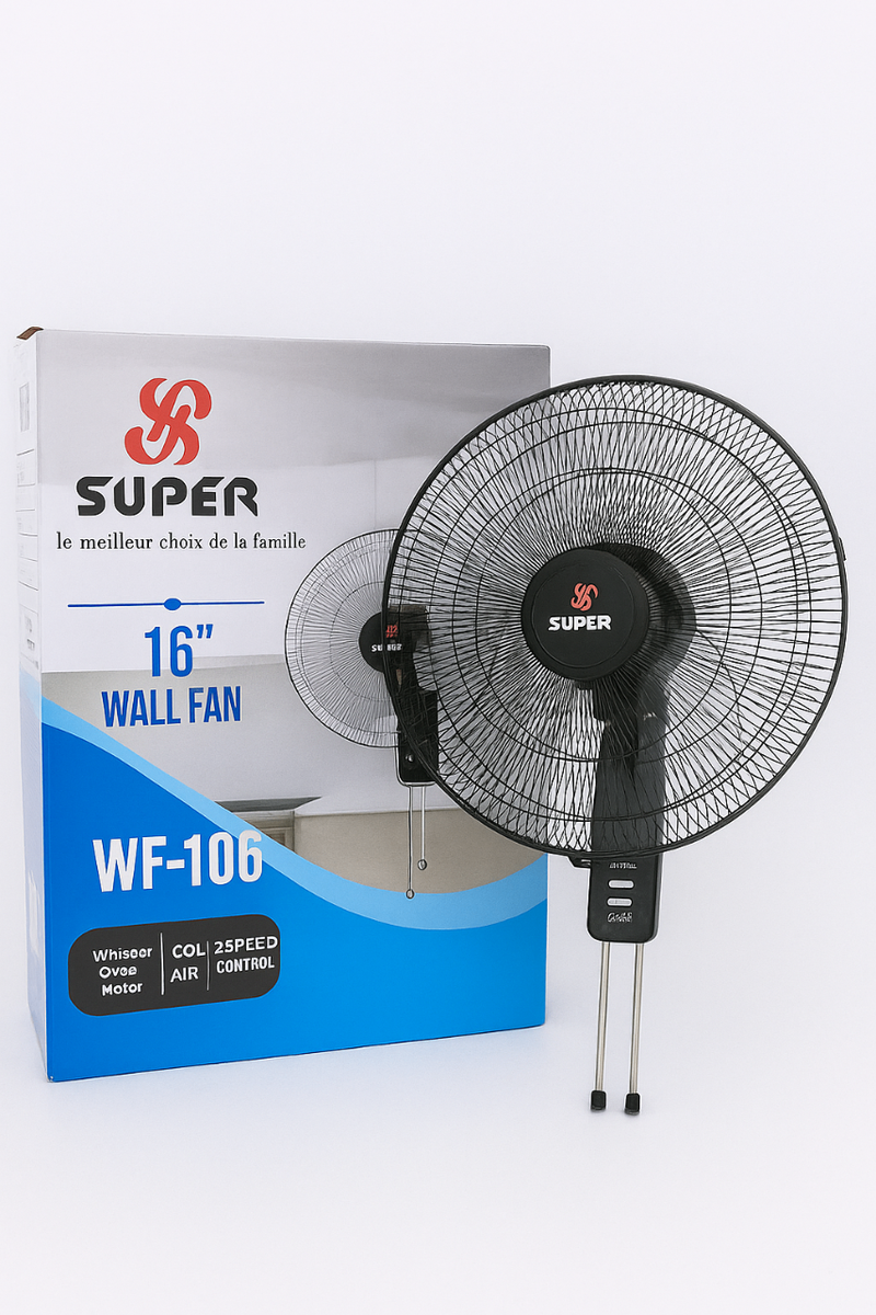Optez pour ce ventilateur mural 16 pouces Super pour un confort optimal. Grâce à son moteur silencieux et son contrôle à 2 vitesses, il fournit un air frais et agréable. Idéal pour la maison ou le bureau, c'est le choix parfait pour rester au frais durant les journées chaudes. Facile à installer, il s'adapte à tout décor.