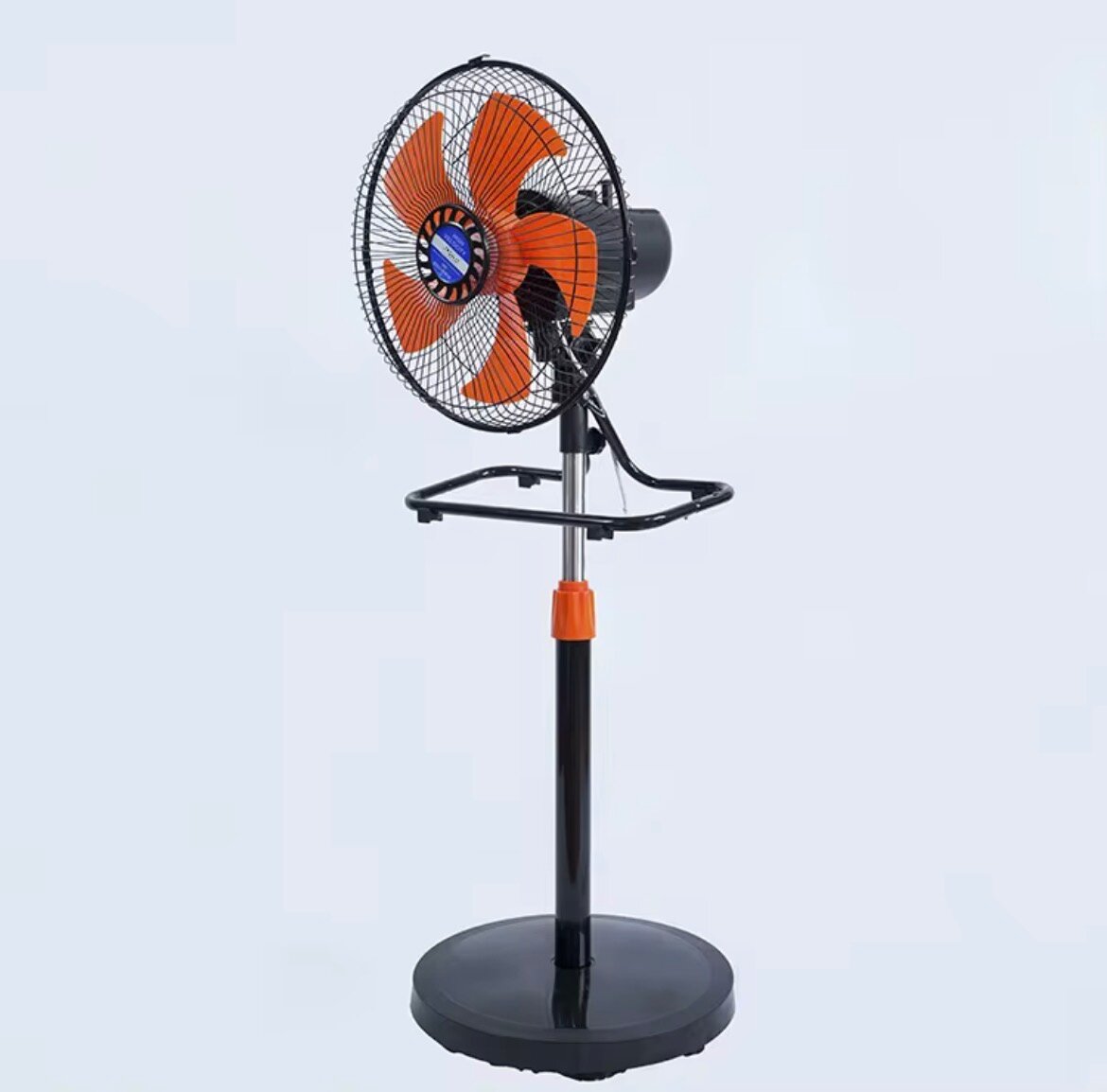 Ventilateur sur pied puissant avec pales orange pour une circulation d'air optimale. Idéal pour rafraîchir vos espaces en été, réglable en hauteur et angle. Polyvalent pour salon, chambre ou bureau. Offrez confort et efficacité.