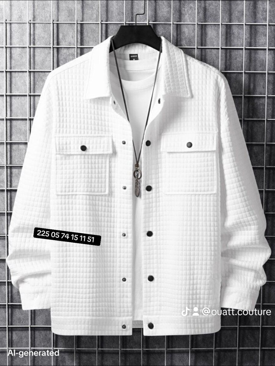 Optez pour cette veste chemise blanche homme, parfaite pour un style élégant et moderne. Avec ses détails soignés et sa texture unique, elle est idéale pour les occasions formelles comme pour un look chic décontracté. Fabriquée dans un tissu de qualité, elle assure confort et style. Un choix parfait pour l'homme sophistiqué!