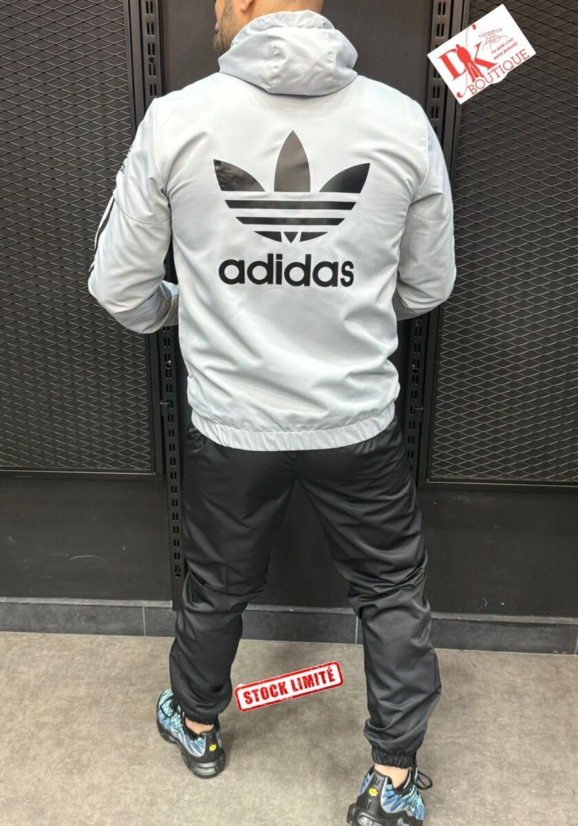 Optez pour cette veste coupe-vent Adidas stylée avec un design emblématique. Parfait pour le sport ou un look décontracté.