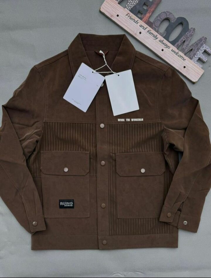 Explorez cette veste en daim marron, parfaite pour un look chic et moderne. Conçue avec des poches pratiques et un design tendance, elle est idéale pour toutes les occasions. Sa texture douce assure un confort maximal. Un choix incontournable pour votre garde-robe.