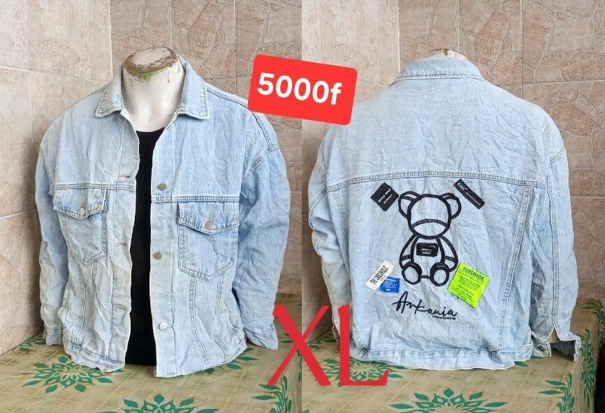 Optez pour cette veste en jean taille XL avec un design unique à imprimé ours au dos. Idéale pour un look décontracté et moderne, elle apporte une touche de style à votre garde-robe.
