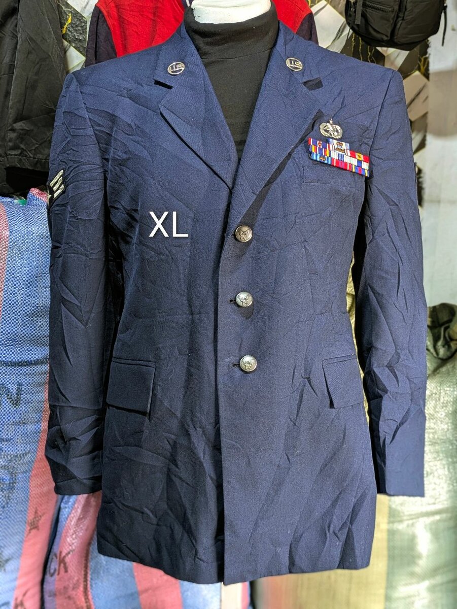 Cette élégante veste militaire bleue en taille XL offre un style classique avec ses décorations emblématiques. Confectionnée avec soin, elle est idéale pour des événements ou pour ajouter une touche distinguée à votre garde-robe.