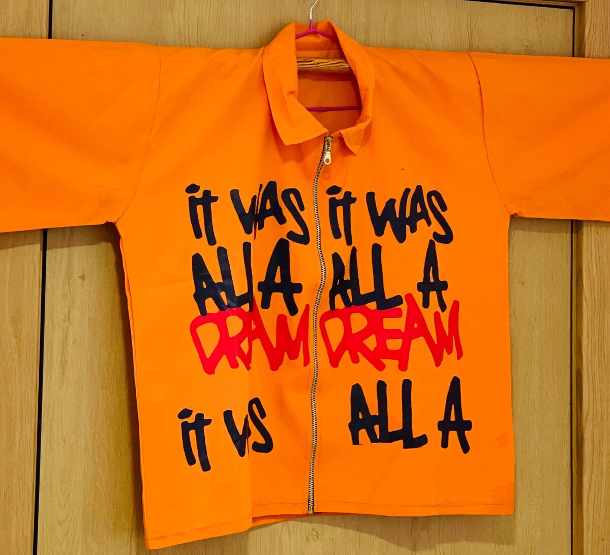 Adoptez un style audacieux avec cette veste orange ornée d'un motif graffiti distinctif. Parfaite pour les amateurs de mode urbaine, elle offre une coupe confortable avec une fermeture éclair pratique. Exprimez votre personnalité tout en restant tendance. Idéale pour des sorties décontractées ou pour ajouter une touche de couleur à votre tenue.