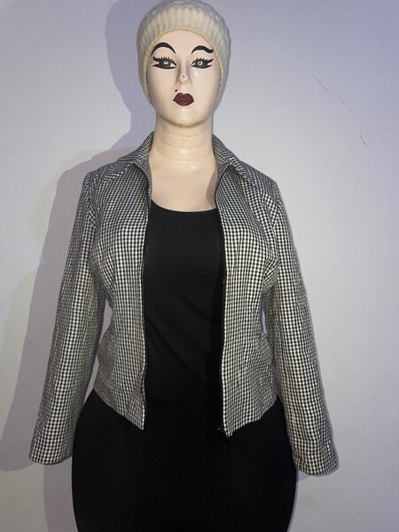 Adoptez un style élégant avec cette veste à motif pied-de-poule. Parfaite pour un look professionnel ou une sortie en ville, elle s'accorde facilement avec des pantalons noirs ou des jupes. Matériaux de qualité pour un confort optimal. Soyez sophistiquée en toute occasion!