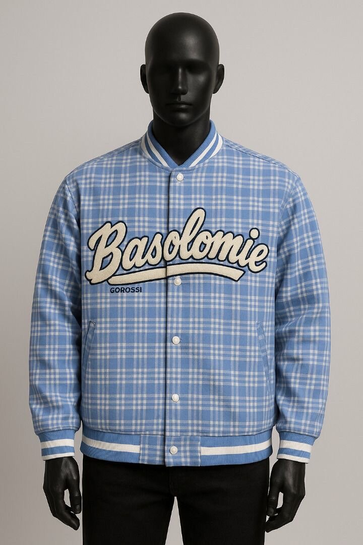 Adoptez le style sport-chic avec cette veste varsity à carreaux bleu et blanc. Idéale pour un look décontracté, elle offre confort et élégance. Parfaite pour les occasions informelles ou un week-end détente.