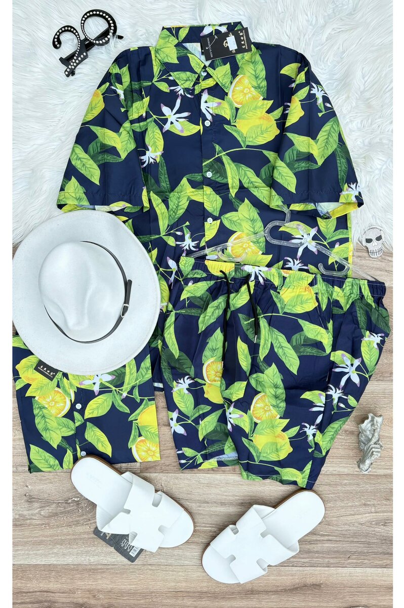 Optez pour ce set estival vibrant, idéal pour des journées ensoleillées. Conçu avec un motif de citron tropical, il offre confort et style. Parfait pour la plage ou une promenade décontractée. Associez-le avec des accessoires blancs pour un look rafraîchissant. Matières légères et respirantes.
