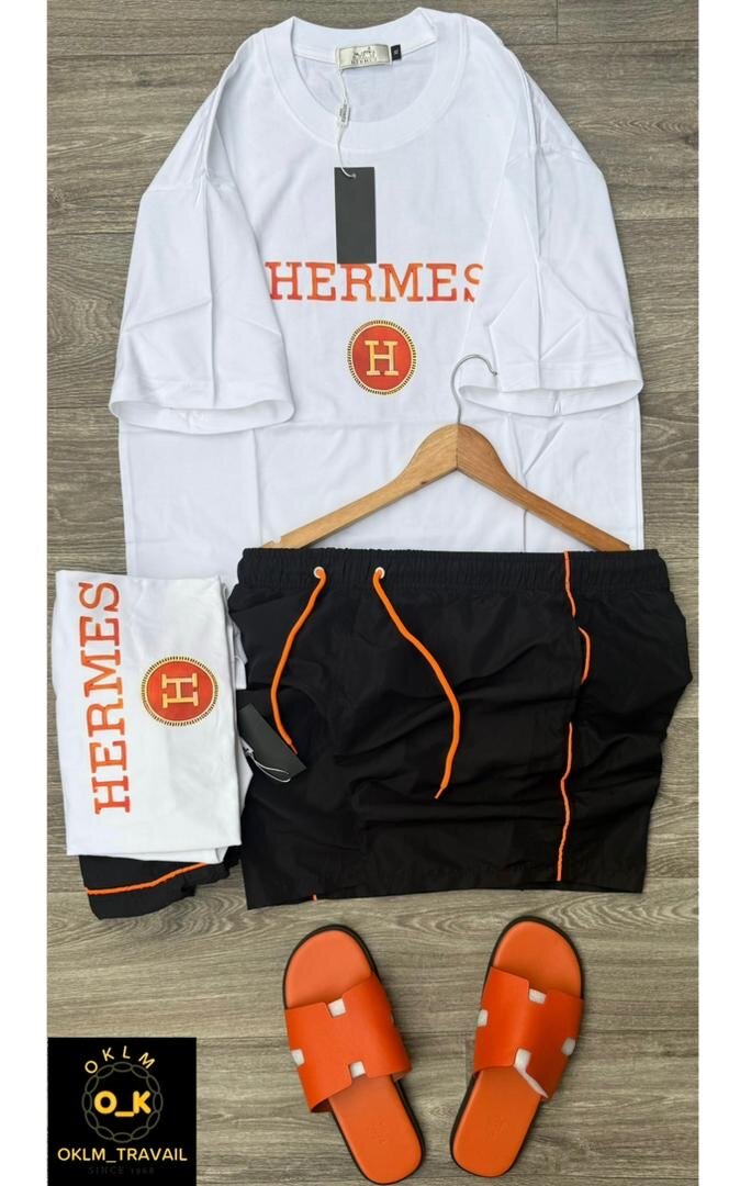 Découvrez ce set d'été élégant et confortable composé d'un t-shirt blanc à logo, d'un short noir avec détails orange et de sandales assorties. Parfait pour un look décontracté et stylé lors de vos sorties estivales. Ce set est idéal pour les vacances, les balades en bord de mer ou simplement pour se détendre avec style. Fabriqué avec des matériaux de qualité pour un confort optimal.