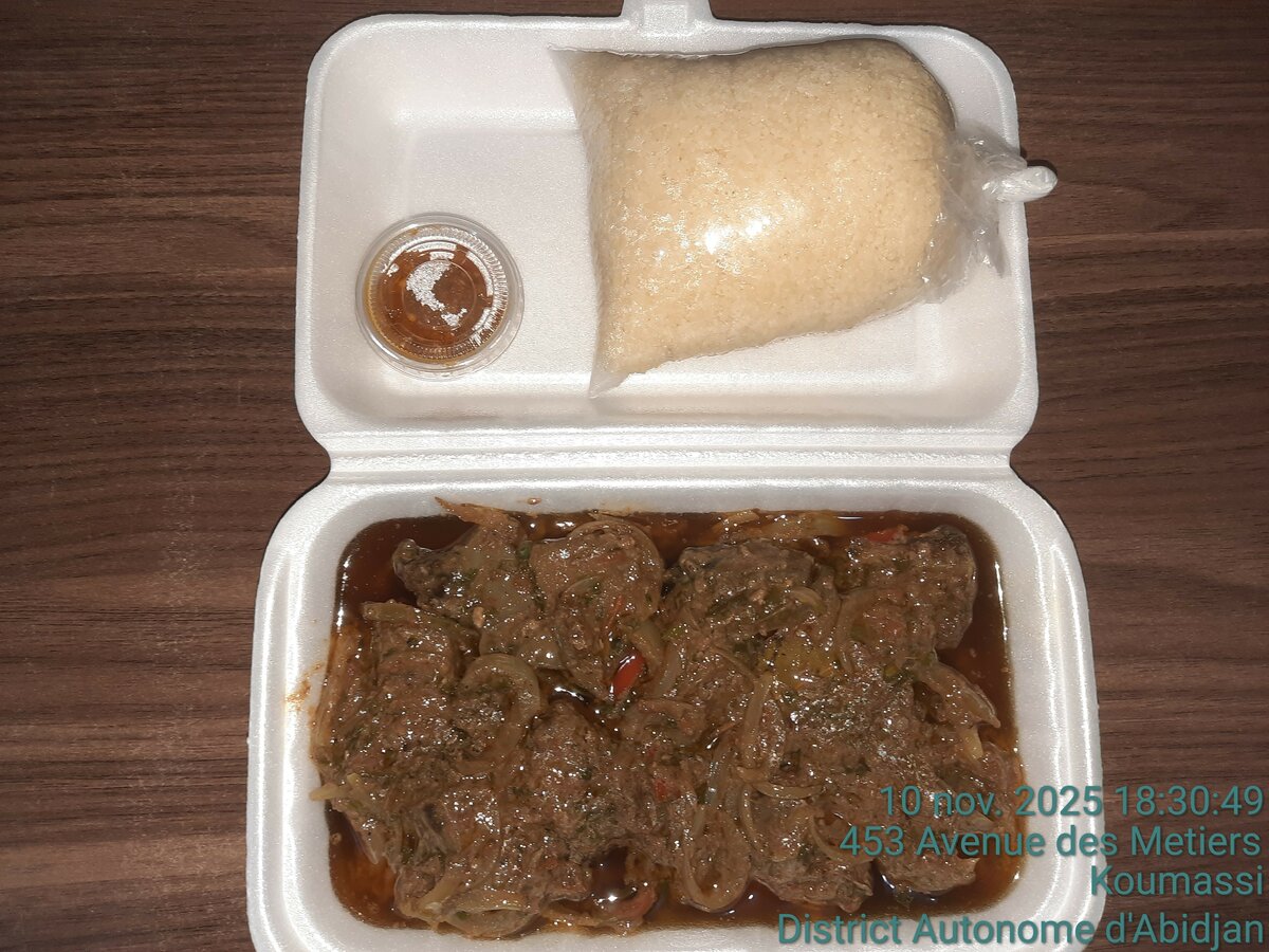 Dégustez ce délicieux plat africain composé de viande sautée, oignons et épices. Parfait pour un déjeuner rapide ou un dîner savoureux. Appréciez les saveurs authentiques preparées avec soin.