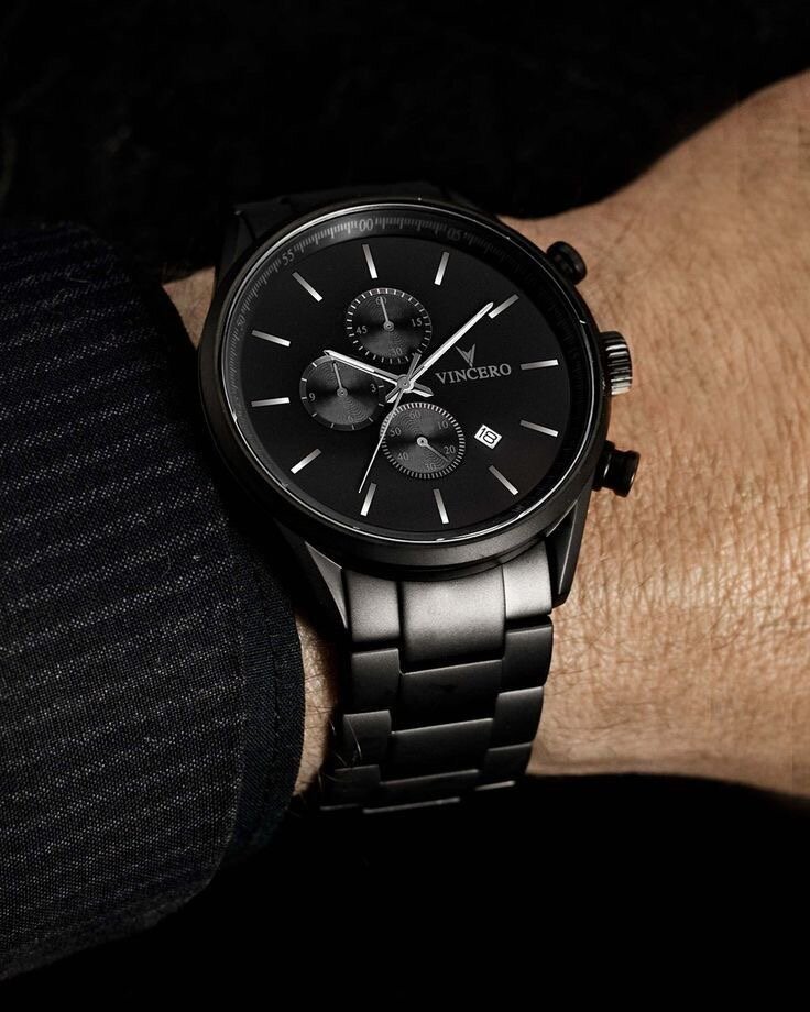 Élégance intemporelle et fonctionnalité moderne se rencontrent dans cette montre chronographe noire Vinero. Fabriquée avec des matériaux de haute qualité, elle est parfaite pour tout homme à la recherche d'un style sophistiqué. Idéale pour le bureau ou une soirée, cette montre rehausse votre look avec classe et précision.