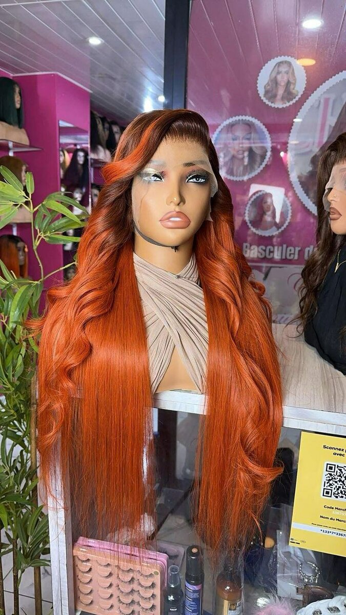 Perruque lisse couleur orangé