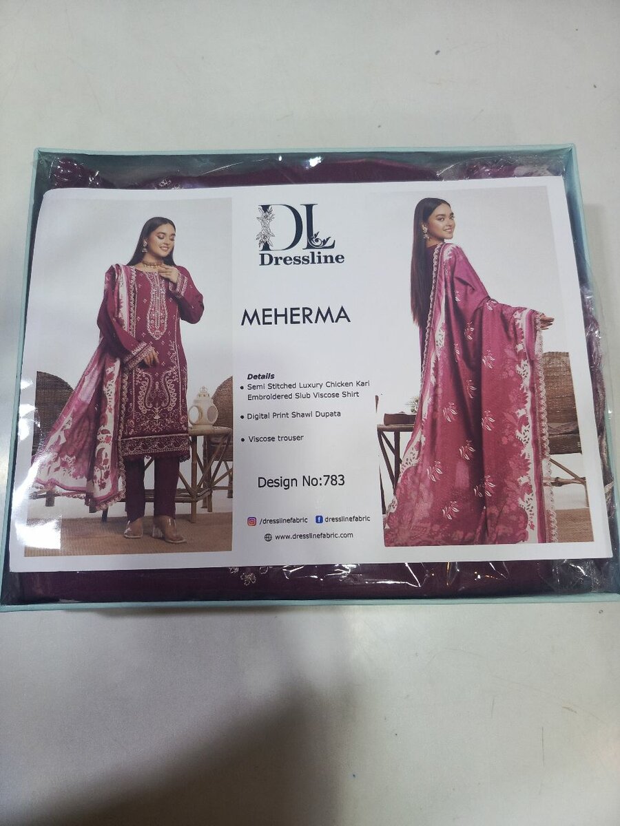 Semi stitched luxury chicken Kari embroidered slub viscose shirt, Digital printed shalw duppata, Viscose trouser