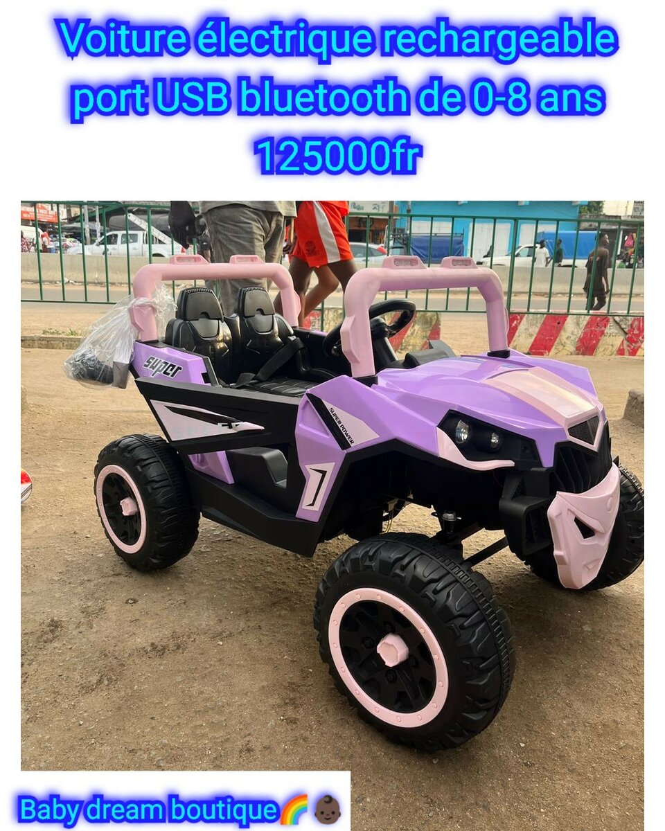 Offrez à votre enfant cette voiture électrique rechargeable avec port USB et Bluetooth pour une expérience de conduite inoubliable. Conçue pour les 0-8 ans, elle allie sécurité et plaisir. Idéale pour jouer dans le jardin ou au parc!
