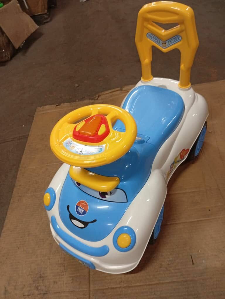 Amusez votre enfant avec cette voiturette pousseur colorée. Parfaite pour les aventures à la maison, elle développe la motricité et l'imagination. Siège confortable avec volant pour plus de réalisme. Idéale pour les petits explorateurs en herbe!