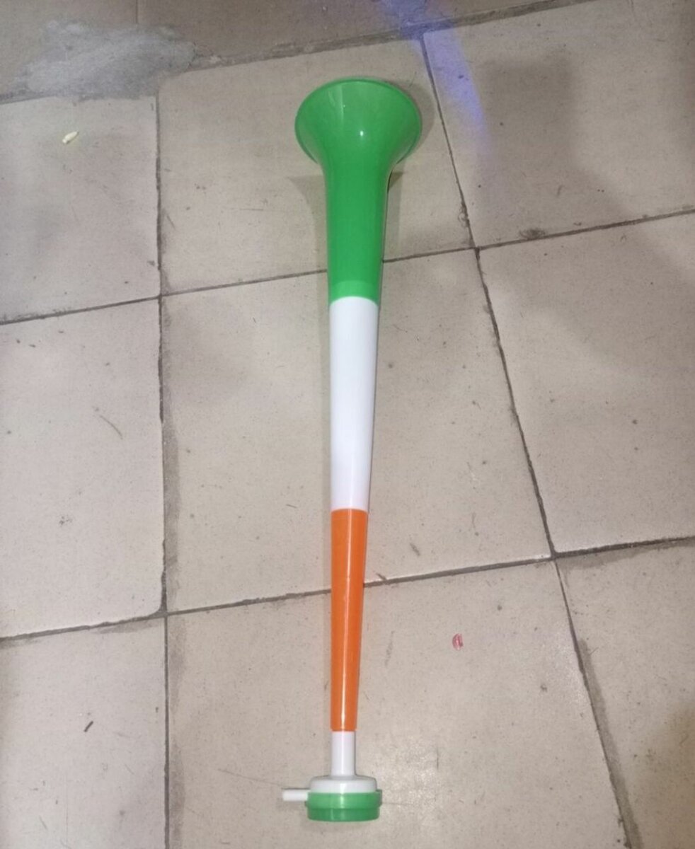 Faites du bruit lors de vos événements sportifs avec cette vuvuzela multicolore. Idéale pour les matchs et les fêtes. Compacte et légère, elle offre une sonorité puissante pour encourager votre équipe préférée.
