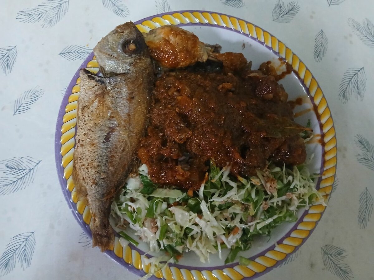 Explorez un savoureux repas de poisson grillé accompagné de légumes frais et d'une sauce épicée.