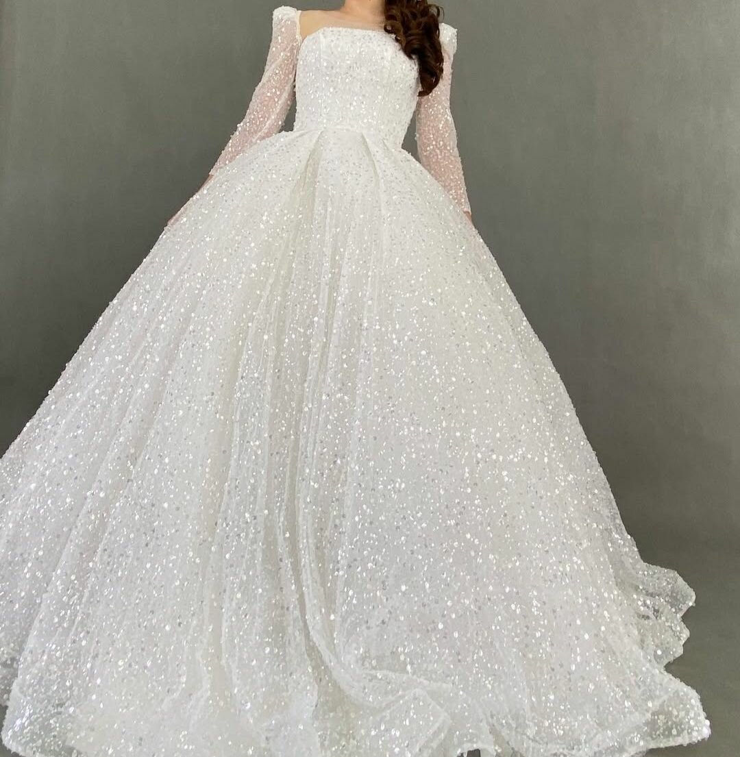 ПЫШНОЕ СВАДЕБНОЕ ПЛАТЬЕ С ПЕРЧАТКАМИ,ФАТОЙ И БАНТОМ НА ТАЛИИ