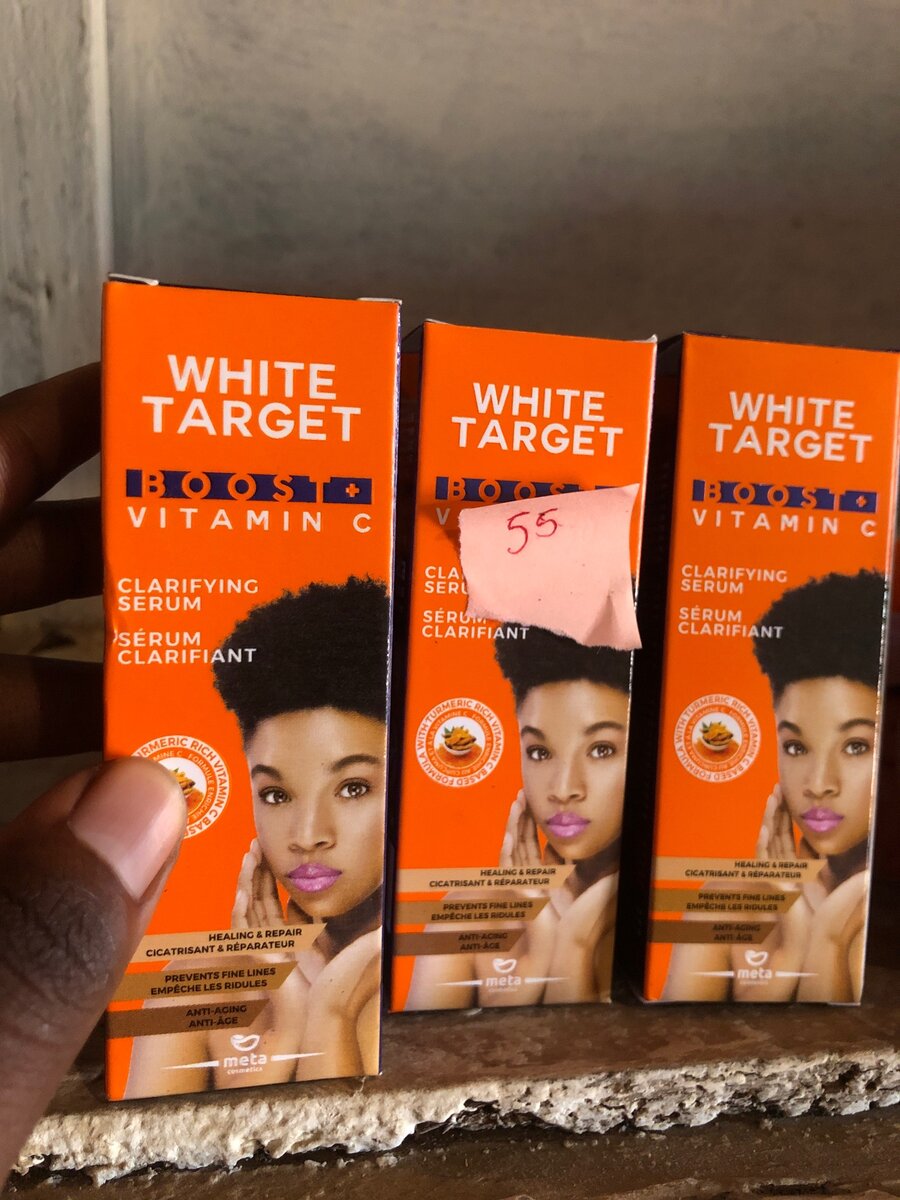 White target serum is a serum that has vitamin c in it. It helps with healing and repair dead cells in skin it also prevents fine line. It acts as an Anti Aging agent.