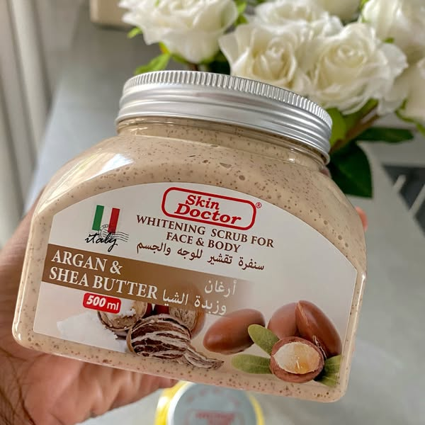 Argan & shea butter Contains natural exfoliating particles which gently exfoliates the skin without any side effects, fir radiant glowing skin. Healthy skin is not an overnight process.