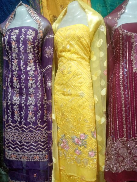 New Eid collection 3 pc .organza,silk, chiffon dc free