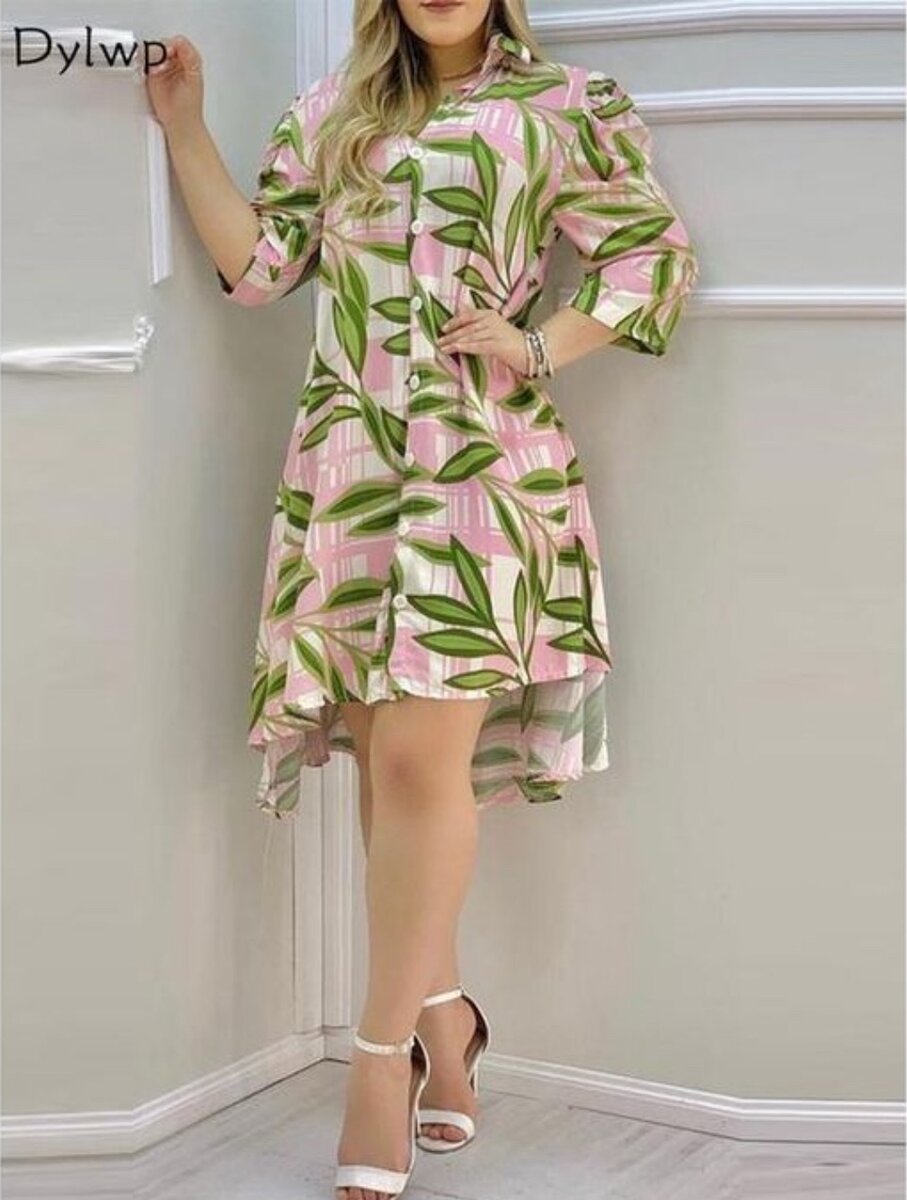 Women Long Sleeve Shirt Dress Casual Floral Print Midi Dress
